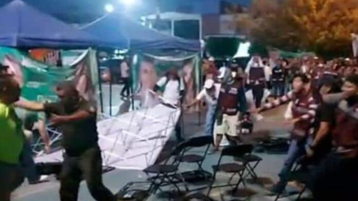 El incidente ocurrió la noche del jueves, cuando un grupo de simpatizantes del Partido Verde realizaba una actividad proselitista en la plaza 1 de mayo de la colonia El Polvorín, al mismo tiempo y lugar que se registraba un acto a favor de la candidata al Senado por Morena, Rita Ozalia Rodríguez.