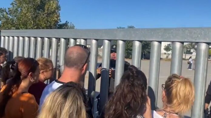 Preocupados por sus hijos, los padres se agolparon en las puertas del centro, que fue rodeado por la policía, según las imágenes difundidas por la televisión española.