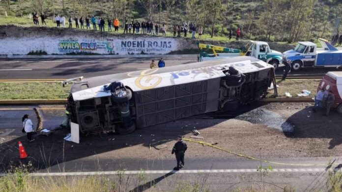 Protección Civil del Estado de México informó que la volcadura del autobús fue consecuencia de una colisión con dos tráileres en la mencionada carretera ubicada en los límites entre el Edomex y Tlaxcala