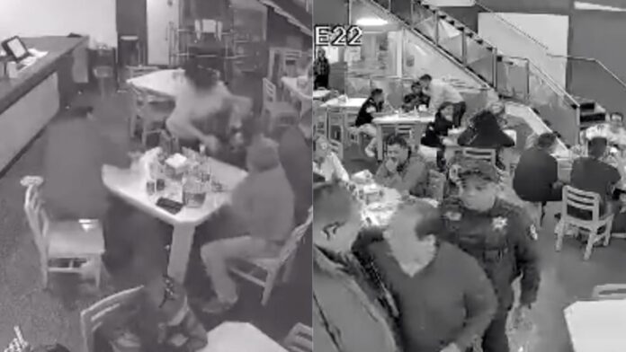 Las imágenes obtenidas de cámaras de seguridad del local muestran que a las 19:54 horas de aquel día, una mujer de complexión robusta se acerca a la mesa donde se encuentra Monroy, una mujer y otro hombre.