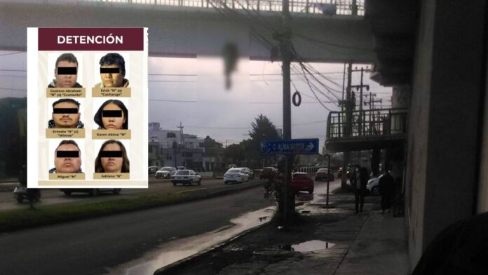 En la conferencia de prensa matutina presidencial del martes, dentro del informe semanal “Cero Impunidad”, el subsecretario de seguridad, explicó que los arrestados, todos residentes de Nezahualcóyotl, fueron identificados como Ernesto “N”, alias “El Winnie“, Miguel Ángel “N”, Karen Abinai “N”, de 18 años, Adriana “N”, Gustavo Abraham “N”, alias “El Gustavito” y Erick “N”, conocido como “El Chango”.