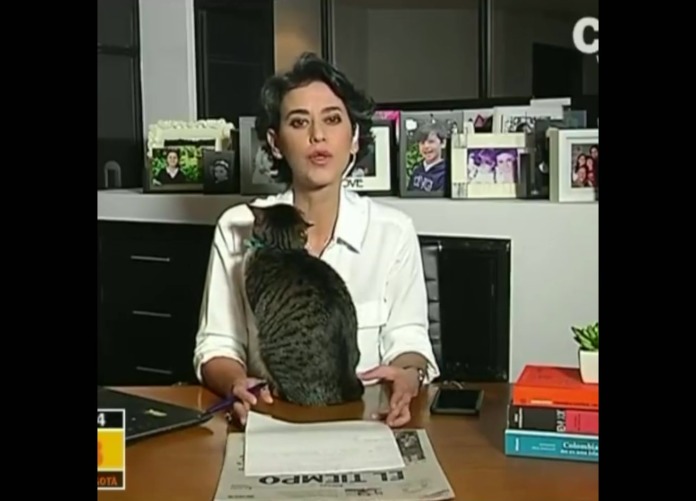 Un gatito se robó la atención de los televidentes durante un noticiero colombiano, esto luego de aparecer frente a la conductora y quedarse ahí, en plena transmisión.