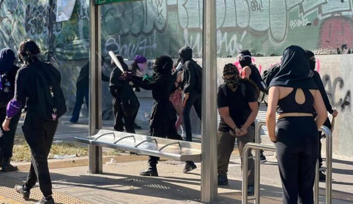 lgunos de los colectivos hicieron una lectura donde pidieron a las participantes enfocarse en acciones sobre el mobiliario urbano y no sobre patrimonio particular, pero muchas de las manifestantes no atendieron estos llamados.