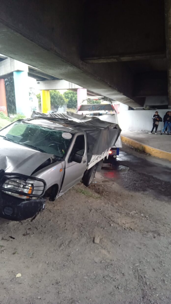 Volcadura de una camioneta en el puente de Reyes Heroles