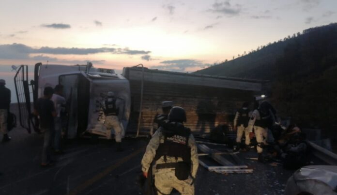 Fuentes oficiales informaron que el transporte donde viajaban los agentes de la Guardia Nacional, integrantes de un batallón perteneciente a la ciudad de Chiapa de Corzo, se volcó y se impactó contra un auto particular, pero hasta el último informe no se reportaron personas fallecidas.