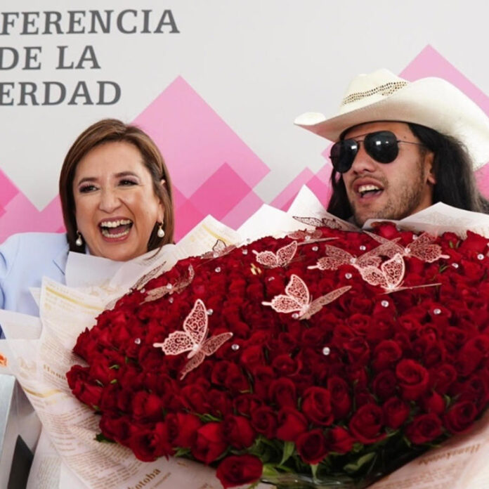 En un giro sorpresivo, un individuo con pantalón de mezclilla, camisa roja, lentes, sombrero y un ramo buchón con varias rosas de color rojo irrumpió en el evento realizado en la Ciudad de México para entregar un llamativo ramo de flores a la candidata de oposición     Xóchitl Gálvez se ruboriza tras llamarle “señorita”La reacción inicial de Gálvez fue de asombro con una respiración entrecortada, seguida por la inevitable pregunta sobre quién era el remitente. Entre risas, recibió el obsequio, sin perder la oportunidad de bromear al respecto.El peculiar mensajero expresó que el ramo buchón era un gesto por parte de sus “Xóchitlovers” quienes aseguró la quieren mucho. Además, de que el tiktoker la describió como una persona muy valiente y muy entrona y antes de cerrar su sorpresa coreó una porra para la candidata que en menos de 24 horas inicia su campaña presidencial.